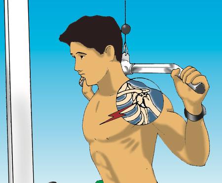 Fear of hitting your head encourages faulty form and fatigue results in bending forward, moving the forearms out of the vertical plane, thus producing excessive strain on the subscapularis muscle and further loading shoulder joint.